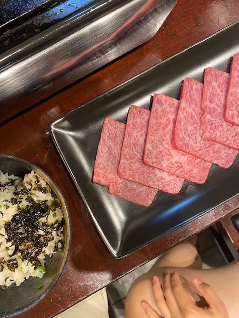 여기는 우설이 굉장히 유명한데 저랑 남편은 부속물을 못 먹어서 도전을 못했습니다 :( 저희는 엄선 와규 3종 모둠(소금), 살치살(소금), 갈비(소금), 파+김 얹은 밥, 오이김치, 꿀레몬사와, 콜라를 시켰습니다. 아주 배부르게 먹었고 총금액은 10만 원 정도 (약 10,380엔) 나왔어요. 와규라서 그런지 굉장히 부드럽고 입에서 살살 녹습니다. 간은 좀 있다는 점! 술안주 하기 좋아요. 더 먹고 싶었으나 야경을 보러 가야 해서 자리를 마무리했습니다.