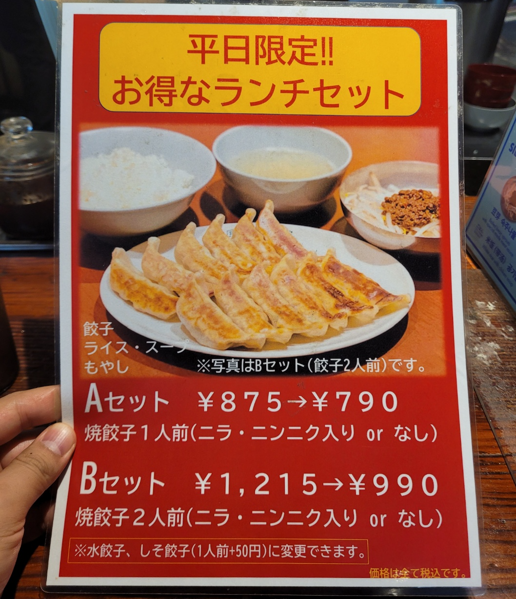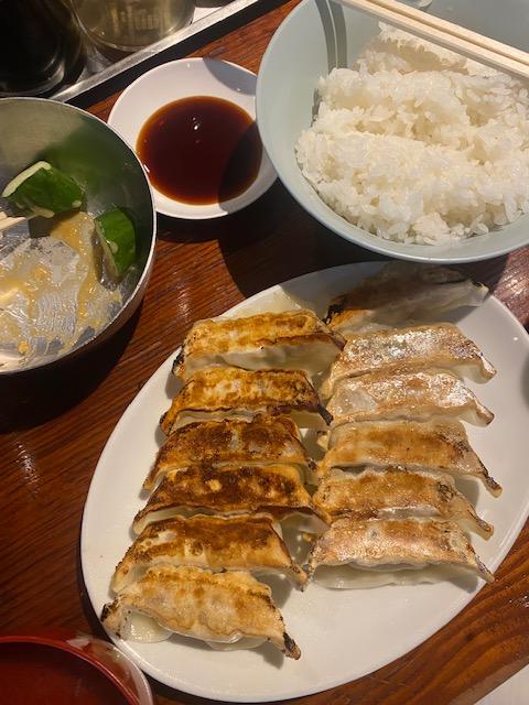 저희는 평일 런치 2인분(교자 12개 + 숙주고기나물 + 밥 2그릇 + 닭고기수프)과 오이된장무침, 콜라 2개를 시켰고 나중에 교자 6개(1인분)를 추가하였습니다. 교자는 오리지널과 갈릭이 있는데 저희 입맛엔 갈릭(마늘+부추 첨가)이 더 맛있는 것 같아요. 교자 굽는 시간이 좀 걸리니 더 먹겠다 싶으면 미리 주문하시는 것도 좋을 것 같아요.