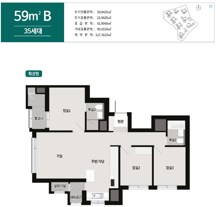 - 59㎡B(35세대) 분양가: 최저 9억 3천 3백 4십 7만 9천원 ~ 최고 10억 2천 4백 7십 9만 7천원