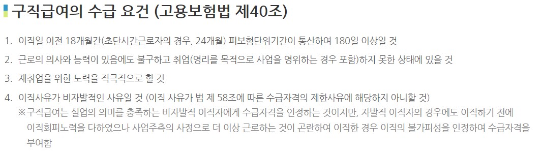 실업급여 수급요건에 대한 상세한 내용은 아래 글에서 설명드리겠습니다