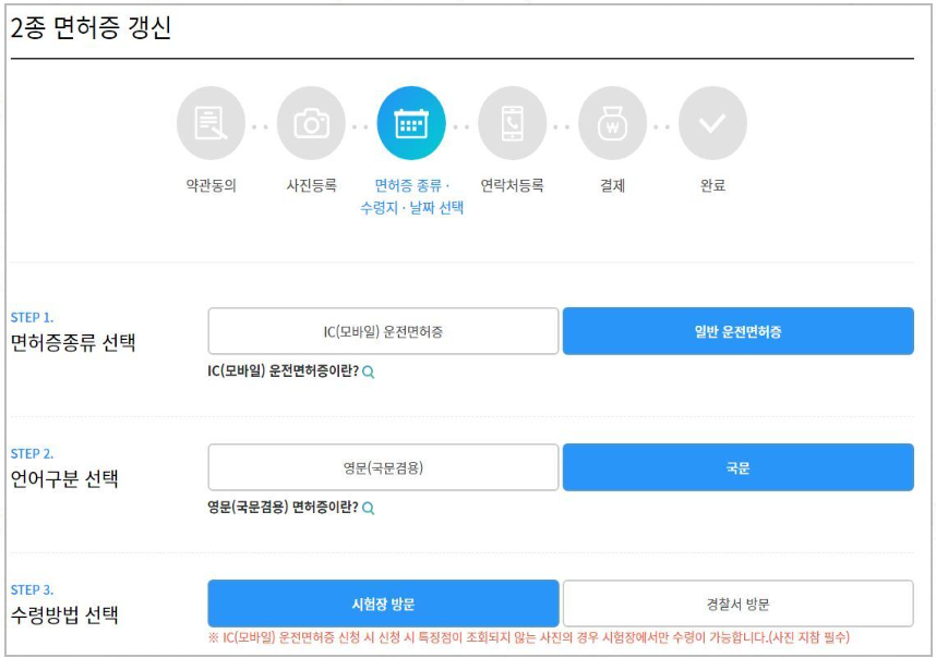 3) 2종 보통면허 소지자 중 7년 무사고자의 경우엔 1종 보통 상위 종별로 갱신할 수 있습니다. 다만, 이 경우엔 인터넷 신청이 불가능하고 운전면허시험장을 직접 방문하여 신청해야 합니다.
