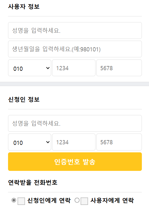 이사 2일전 사전예약을 통해 전입신청을 해주셔야 합니다. 전입신청은 아래와 같이 사용자정보와 신청인정보만 입력해주시면 됩니다.