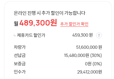 차량가격 | 51,400,000 | 월대여료 | 489,300 |