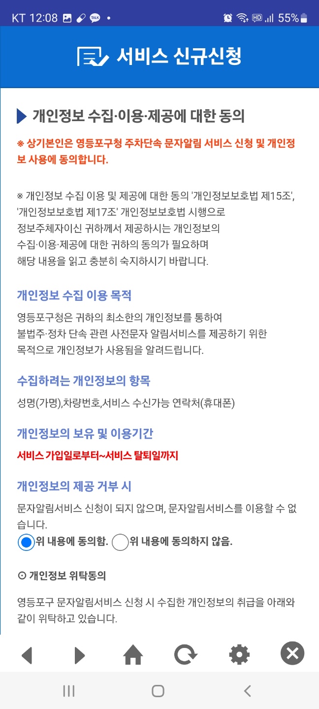 주정차단속 알림 서비스 통합가입 도우미 앱