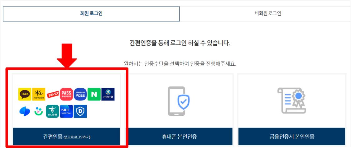 그러면 로그인 화면으로 이동합니다. 비회원 로그인 말고 회원가입하셔서 로그인하시는 것을 권장합니다. 회원가입 후 간편인증으로 로그인하면 쉽겠죠? :)