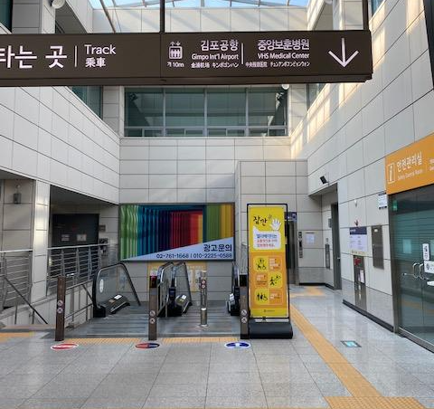 열차가 출발하고 5분 뒤에 김포공항역에 내립니다.